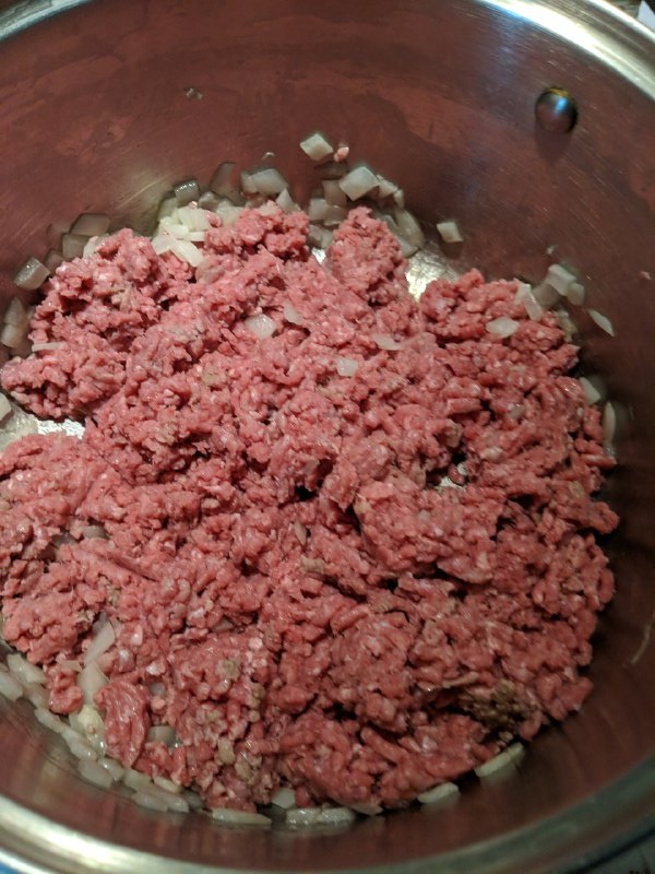 - Add in the beef and increase the heat to medium-high. Crumble the meat into very small pieces as you brown it. If desired, drain off any excess fat.