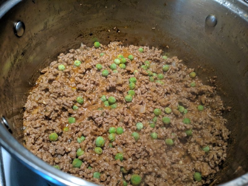 After the beef mixture is done simmering