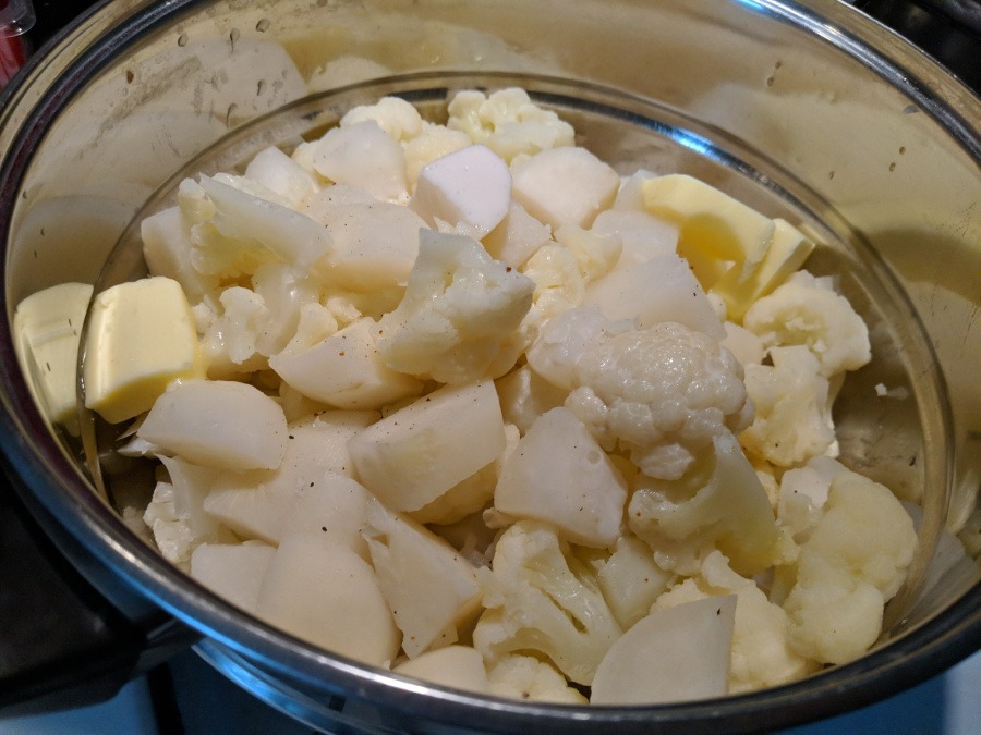 Boiling the cauliflower & turnips